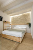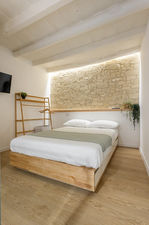 Il piano superiore ospita la zona notte, composta da una raffinata camera da letto e un bagno moderno realizzato con finiture di alta qualità firmate Marazzi.
